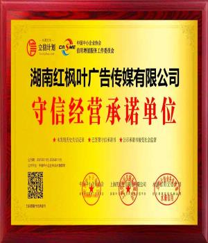 紅楓葉傳媒,榮獲中國(guó)中小企業(yè)協(xié)會(huì)頒發(fā)的“守信經(jīng)營(yíng)承諾單位”